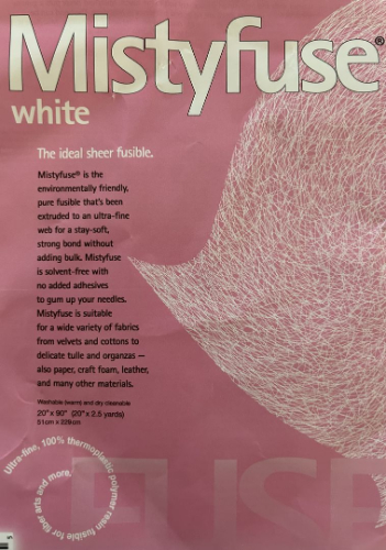 I have no experience using Mistyfuse, so I went looking for someone who might know something about it. I found a YouTube video from the Collage Quilter, Emily Taylor, entitled "Comparing Fusibles". This video is very informative and well done. The presenter evaluates and compares 6 products, shows how to use each product, quilts each fused item while you watch, and shows how each product performed during and after being quilted. The products include: Lite Steam-A-Seam 2, Steam-A-Seam 2, Soft Fuse, Wonder Under, Heat N Bond, and Misty Fuse. Every product, except Misty Fuse, comes with a paper backing and features a tacky adhesive that holds it in place temporarily, without the heat of the iron.
