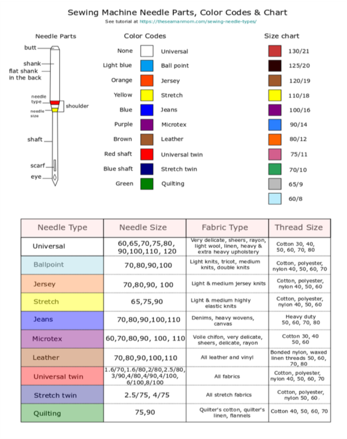Sewing Machine Needles. The following shows all the parts of a sewing machine needle by needle type: (source: pinterest.com)