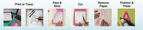 What is really great about this product is that it has a tacky adhesive that allows you to stick down the fusible on the fabric without ironing it permanently in place, hence the "peel & stick" step shown in the picture. If you don't like the position, you can move it. Once you like the placement, you iron it down and, with this product you apply steam. Once pressed and steamed, it is fused permanently. Steam-A-Seam 2 has worked well for me in the past. It is also available in Lite-Steam-A-Seam 2, which also creates a permanent bond but has a lighter feel after bonding. Use of a light table and a pencil for tracing a design from a pattern or picture on to the backing paper, is recommended.