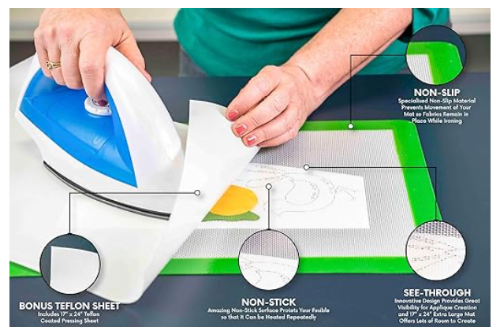 If you work with fusibles, even periodically, I recommend that you obtain a pressing mat especially for fusing. In 2021, I purchased the 17" x 24" Precision Fusing Mat with a free non-stick 17" x 24" pressing sheet, as shown below: